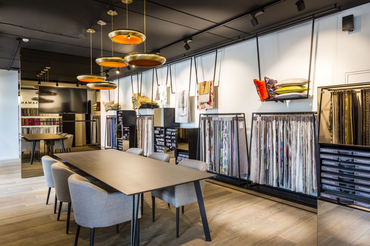 Устойчивые стойки подходят для демонстрации материалов и текстур, позволяя клиентам внимательно рассмотреть каждый товар.